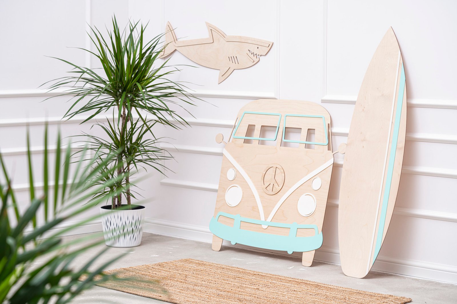 Dekoracja drewniana w kształcie kampera.
