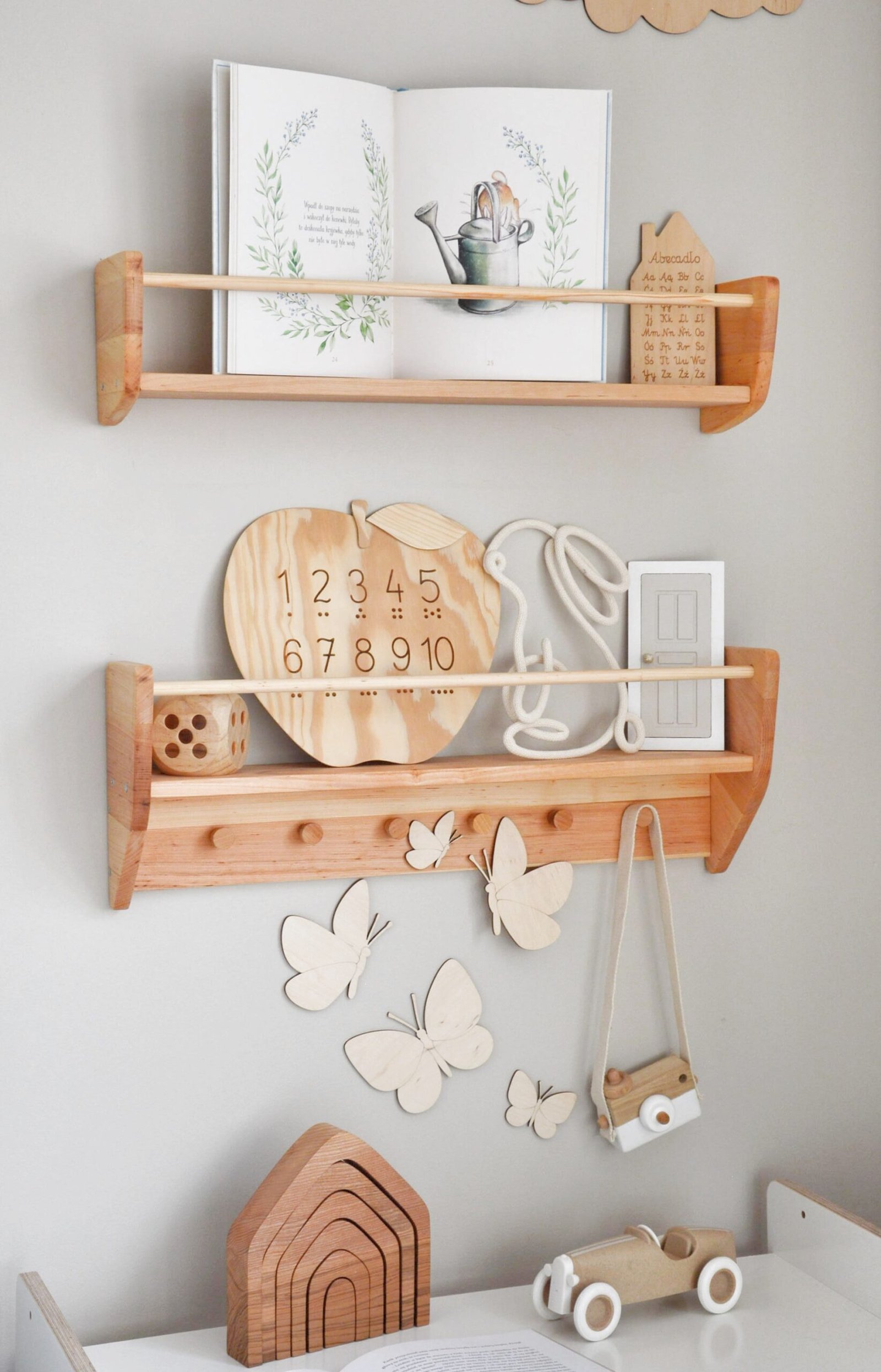 Dekoracja drewniana w kształcie motyli. Dekorację można powiesić na ścianie.